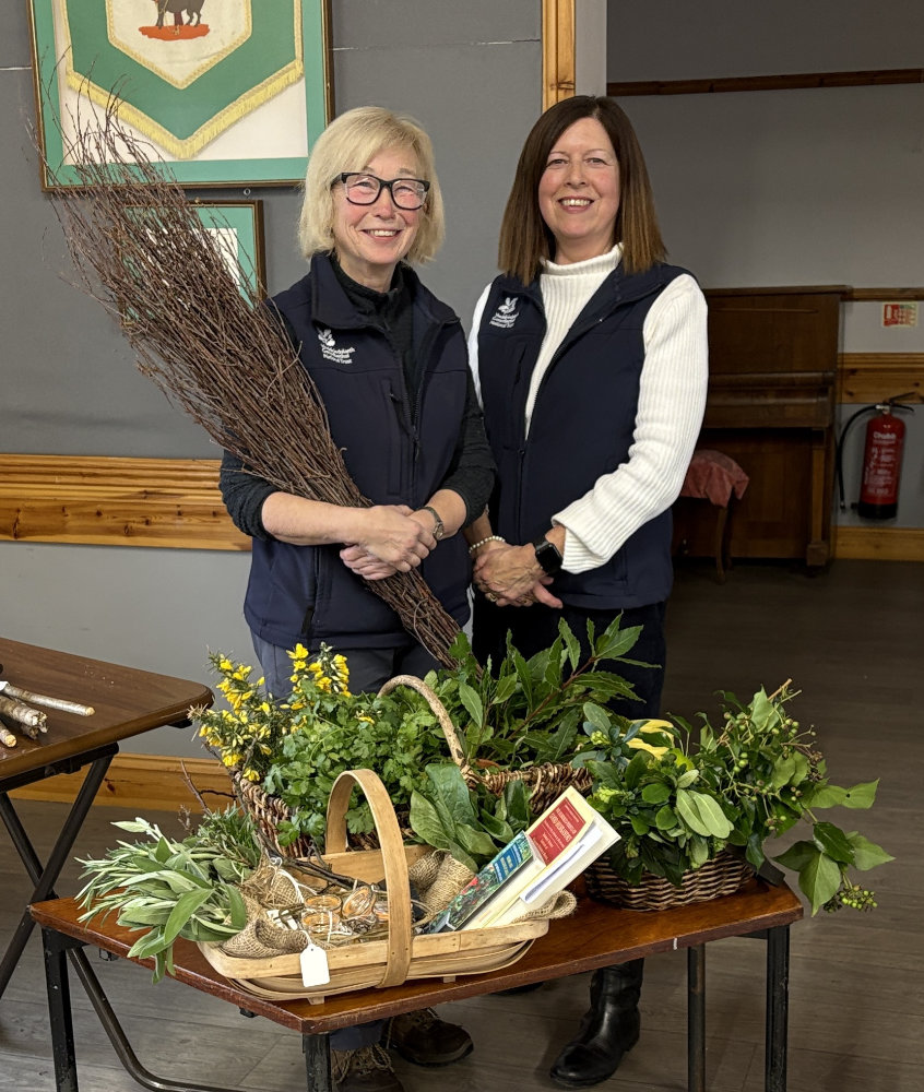 Mair and Melanie with a selection of items, many from the garden , used as food, herbal remedies or cleaning agents